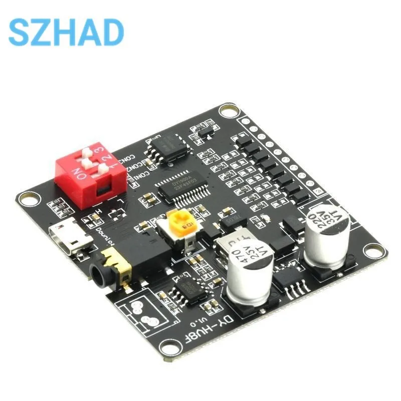 Devi aggiungere suoni, messaggi vocali o musica a un progetto elettronico, un sistema di annunci, un distributore automatico o un gioco? Il modulo DY-HV20T è un piccolo gioiello! Supporta schede microSD fino a 32 GB, decodifica file MP3 e WAV, e può riprodurre fino a 65535 brani diversi tramite controllo seriale UART (a 9600 baud) o 255 brani tramite ingressi trigger. Ha un’uscita audio amplificata da 20W massimi (su 4 ohm) o 10W (su 8 ohm), quindi puoi collegarlo direttamente a un altoparlante. Si alimenta da 6 a 35V, quindi va bene per impianti 12V o 24V. Il modulo è nero, misura 50x50 mm, e si configura facilmente con i dip switch per scegliere tra 7 modalità operative. Perfetto per hobbisti, maker, negozi, musei, o per creare sistemi di automazione con suoni. Potente, compatto e versatile: con questo modulo dai voce ai tuoi progetti!